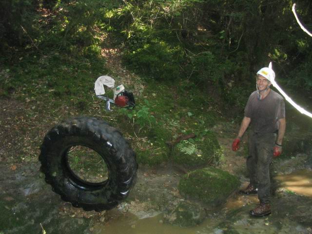 Le spectacle est effarant, un amas de pneus de tracteurs, roues de voitures, baignoires, cuves à mazout, des fûts et autres objets de toute nature jonchent au milieu du ruisseau. Un véritable désastre pour l’environnement. Des années de laxisme. Par où commencer?