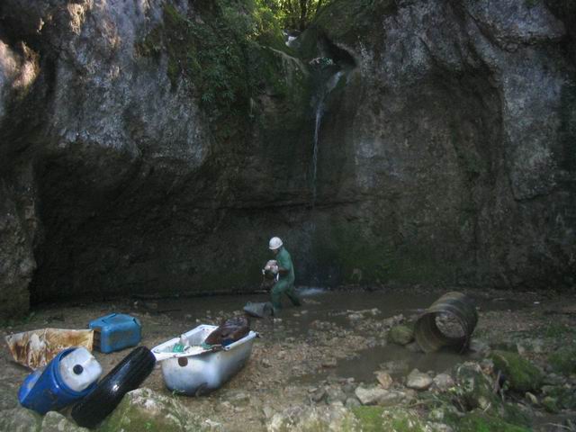 Ce dernier est très encombré par les déchets d’une décharge sauvage. Au-delà de la pollution visuelle et aquatique, le véritable danger vient des chutes d’immondices jetées depuis la route, 200 m en surplomb.