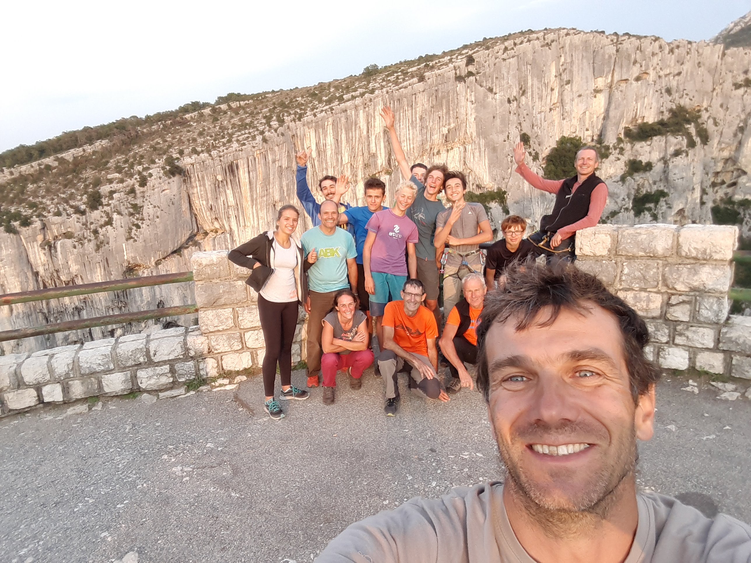 Fin août, c'est un petit groupe de 6 jeunes qui fait route vers La Palud. Au programme cette fois-ci, de la couenne mais surtout la découverte de la grande voie. Certains ont déjà un peu d'expérience, mais pour d'autre c'est une première. Le stage étant combiné avec une formation "monitorat grands espaces", les jeunes ont eu la chance d'avoir un moniteur pour chacun d'entre eux, et dans ces conditions, ils ont progressé à pas de géant. De ce stage on retiendra l'échange et la transmission des connaissances, mais aussi la montée pour du beurre à Hulk, les orages et les vautours!