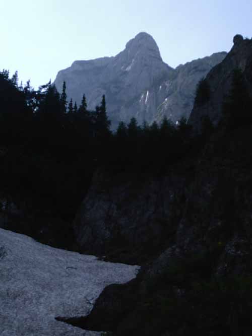 Prière exaucé, le lendemain il est au rendez vous, faisant le timide derrière les nuages mais permettant de sécher la falaise. Daniel nous conseil la voie Mielul (agneau), 5 longueurs VII (6b) max, entièrement sur pitons. La partie basse est assez herbeuse, voire jungle tropicale, mais le haut de la paroi est un beau calcaire gris compact et bien sculpté. Dommage que la voie soit courte, mais notre soif de grimper nous fait apprécier pleinement cette première expérience dans les Carpates.