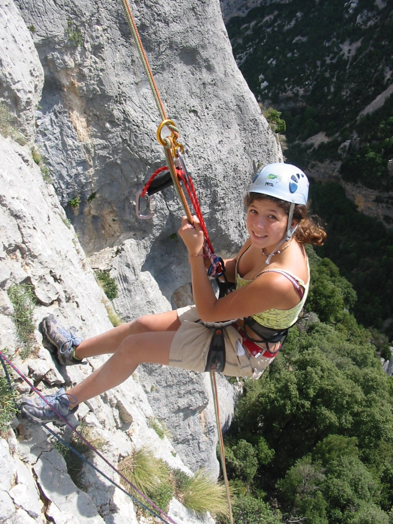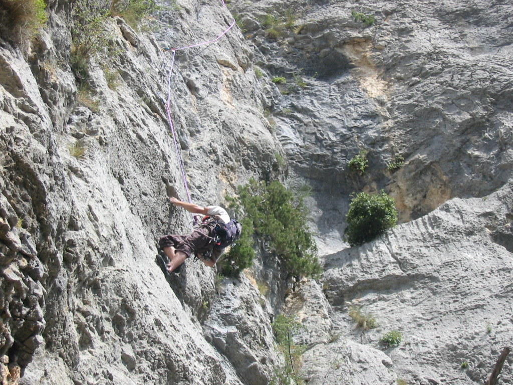 Deuxième jours de stage, arrivée au sommet des gorges du Verdon au belvédère des Carrelles et, découverte des falaises surplombant le vide à plus de 300 mètre de haut. Particularitée du Verdon, il faut effectuer un très beau rappel de plusieurs longueurs afin d’arriver au pieds des voies. La remonté est vraiment plaisante, les voies sont bien équipées et les vautours rasant la parois quinze mètres au dessus nos têtes, nous montre à quel point se milieux est encore sauvage malgré une quantité très importante de touristes .