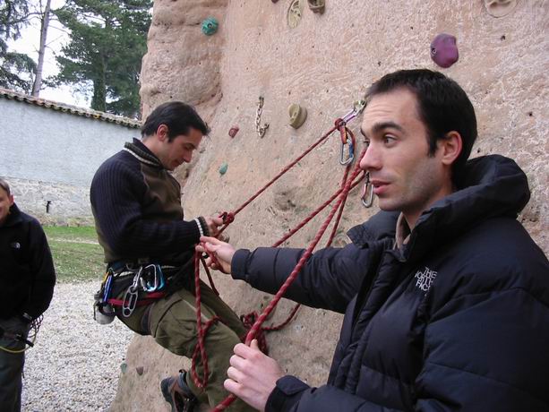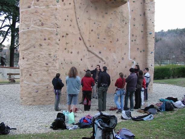 échauffement, rappel du noeud de huit, petit jeu avec objectif d'atteindre le sommet du mur, et pour finir petit briefing de la séance.