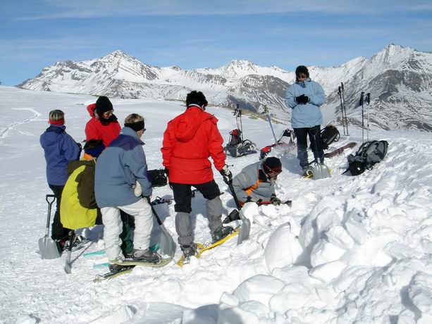 - La montagne enneigée, un environnement à préserver, traces & indices de la faune, la grande faune… Un rappel théorique et pratique « technique de recherche ARVA » est effectué le matin.