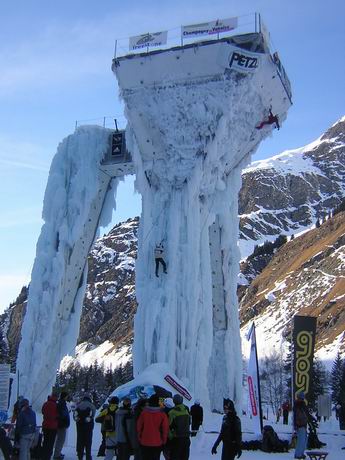 - " Chers amis de la FFME, question à 1 million d'euros : Quel est l'évenement où l'on peut à la fois grimper sur une tour de glace MONSTRUEUSE, faire du ski de fond-tir à l'arc, pousser de vielles luges à foin comme des acharnés, se mettre au taquet sur un parcours 'alpinistique' bien chaud et bien entendu faire la grosse fiesta en dansant sur le son d'Omar Perry ????