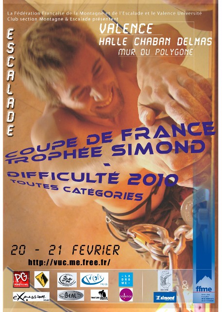 La coupe de France fait escale à Valence les 20-21 février (organisée par le VUC Montagne et Escalade).