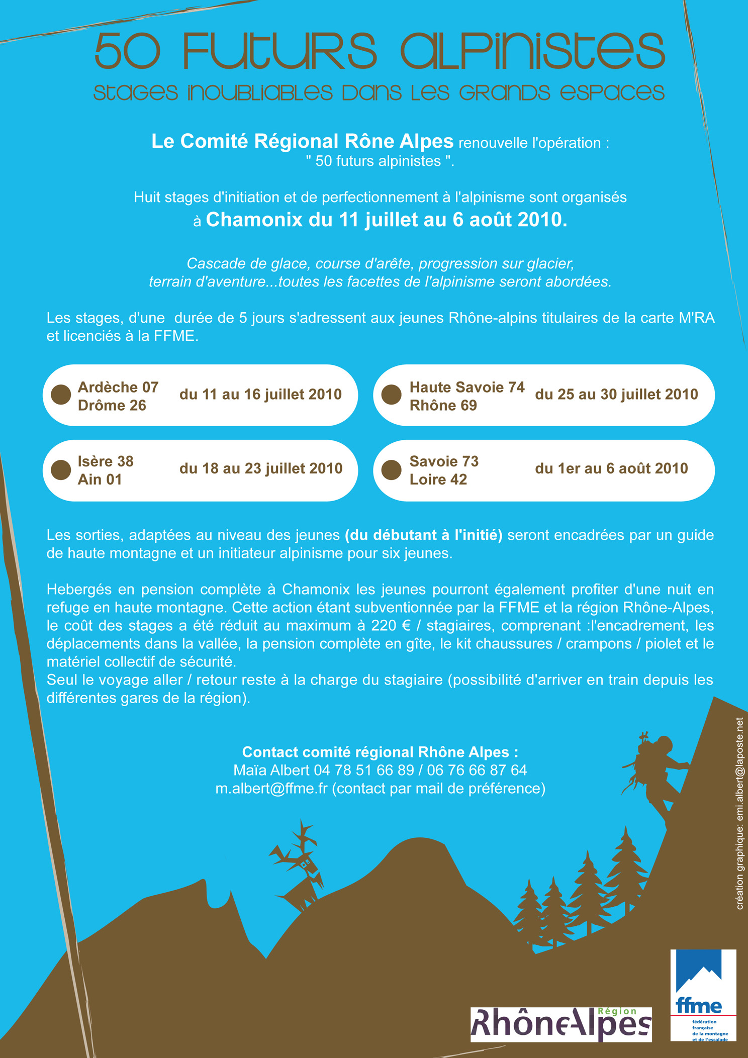 Les stages, d'une durée de 5 jours s'adressent aux jeunes Rhône-alpins titulaires de la carte M'RA et licenciés à la FFME.